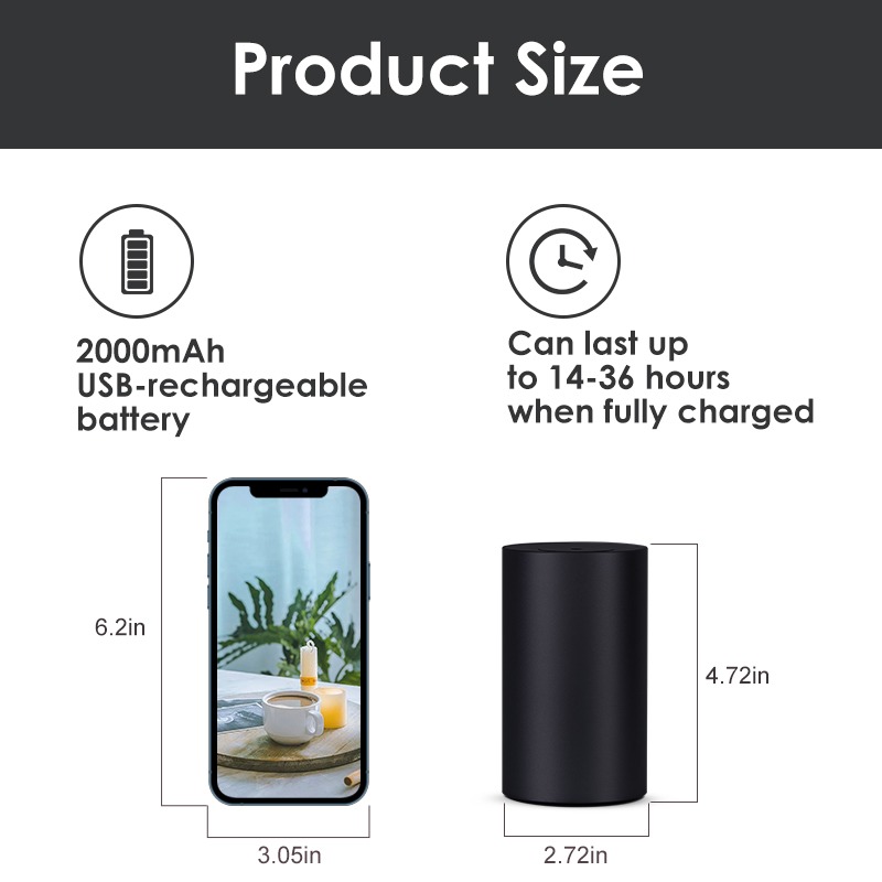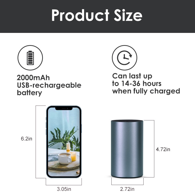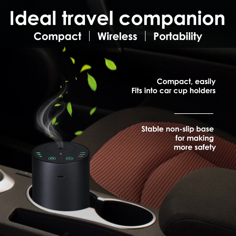 A premium waterless essential oil diffuser with aluminum design, powerful scent diffusion, and up to 36 hours of battery life — perfect for car, office, and home.