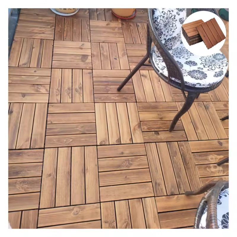 Premium carbonized wood deck tiles with interlocking system—durable, water-resistant, and perfect for patios, balconies, and indoor spaces.