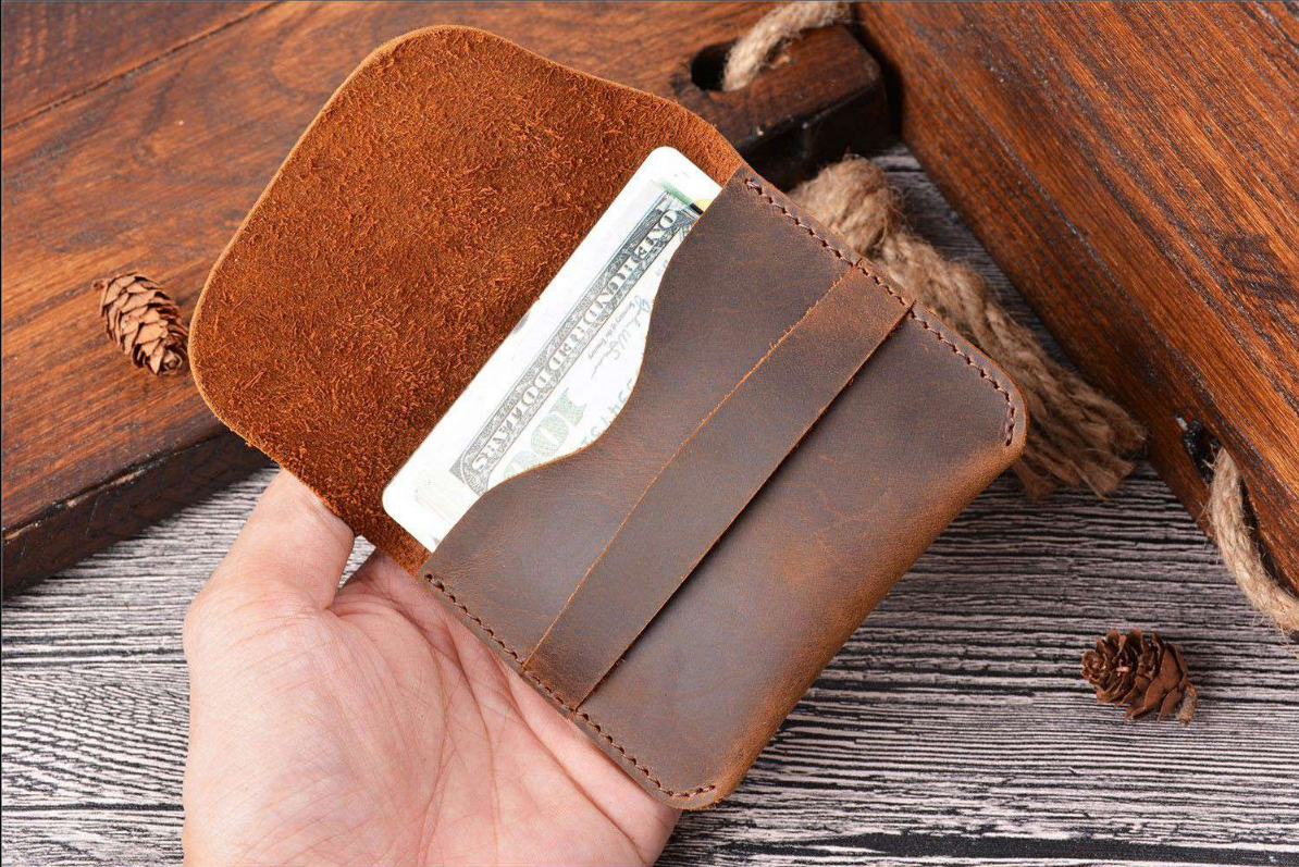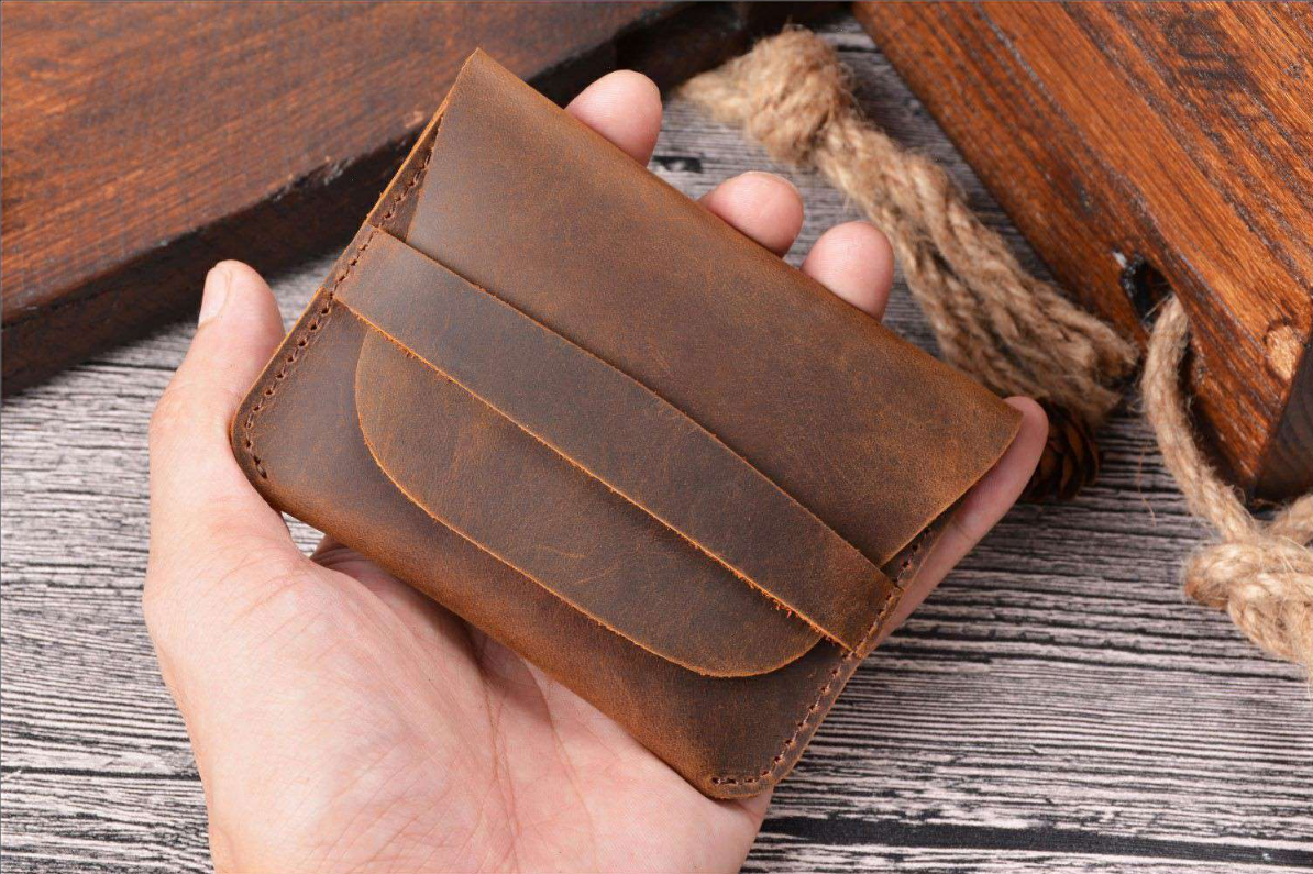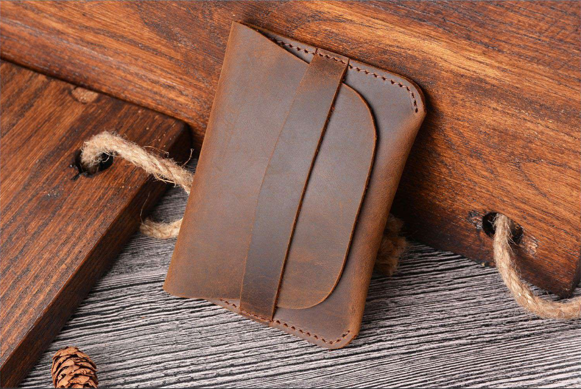 Crazy Horse Leather Card Holder – Minimalist Handmade Wallet