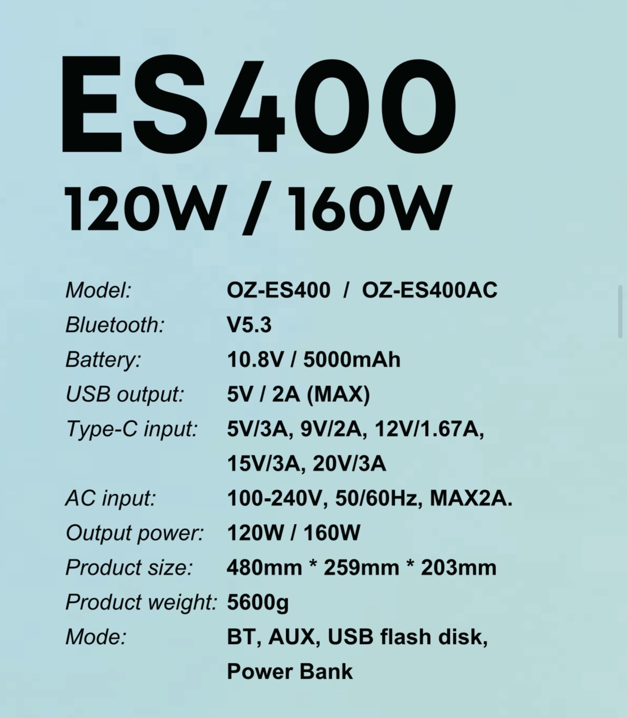 ES400 Portable High-Power Bluetooth Speaker (120W / 160W)