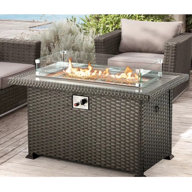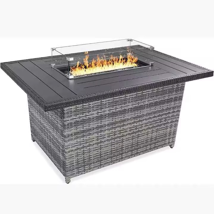 Luxury Wicker Fire Pit Dining Table – 2-in-1 Outdoor Gas Fire Table for Patio & Garden