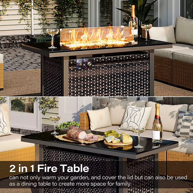A premium 2-in-1 fire pit table that brings warmth, elegance, and functionality to your outdoor space—perfect for dining, entertaining, and relaxing.