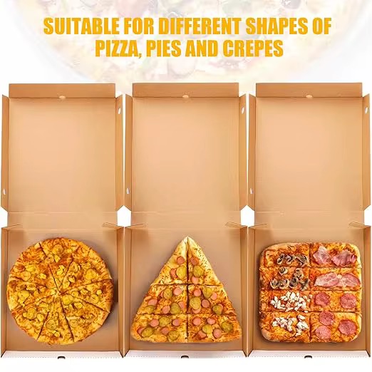 Durable eco-friendly kraft pizza boxes designed for takeout and delivery. Strong, grease-resistant, and perfect for restaurants and food businesses.
