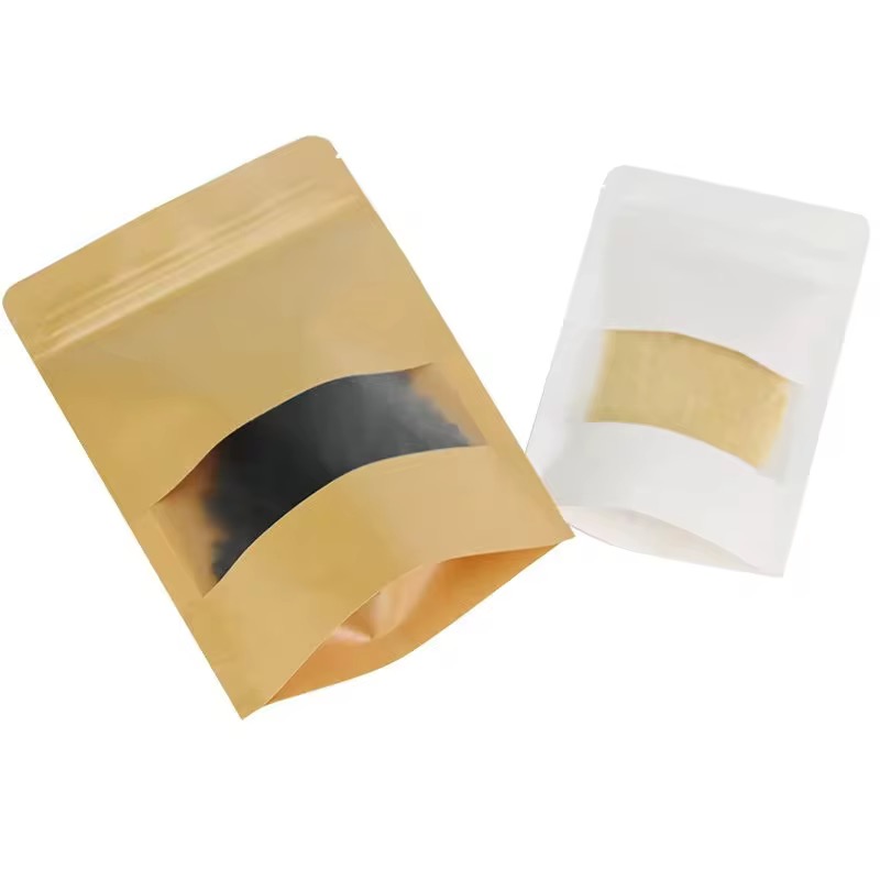 Kraft Stand-Up Pouch with Window – Resealable Food Packaging Bag