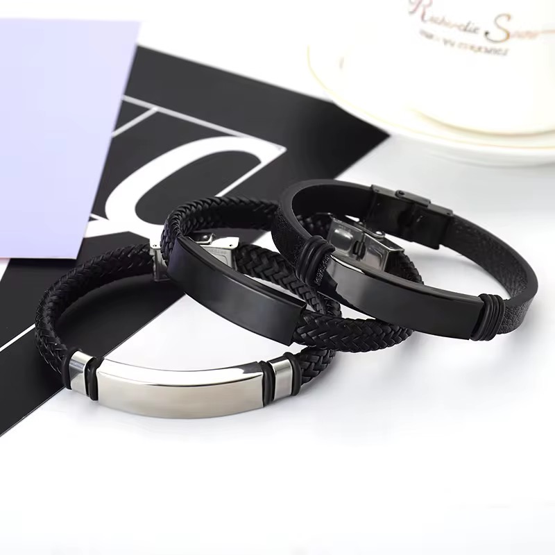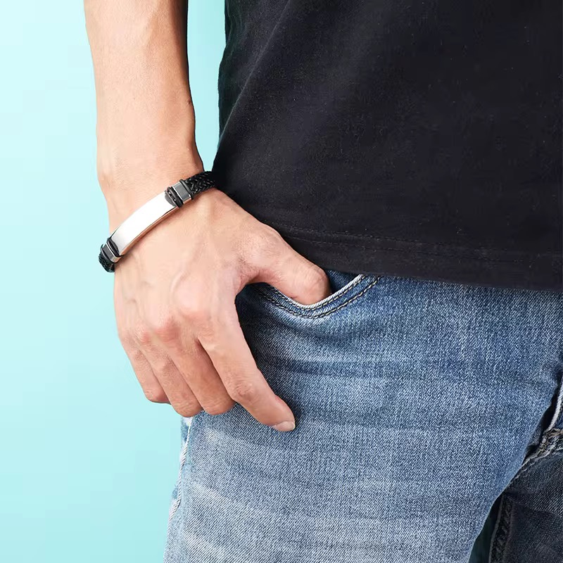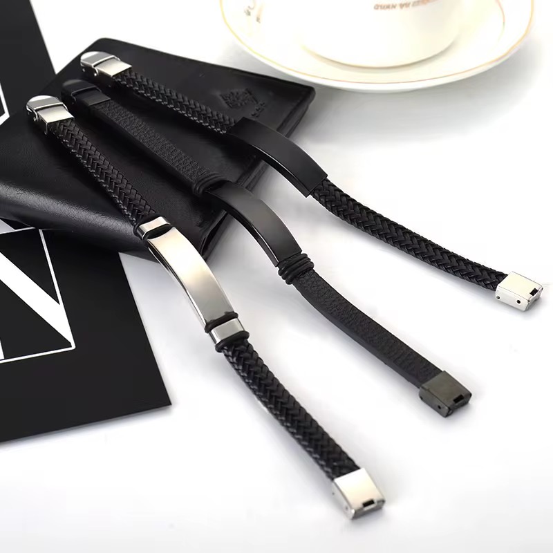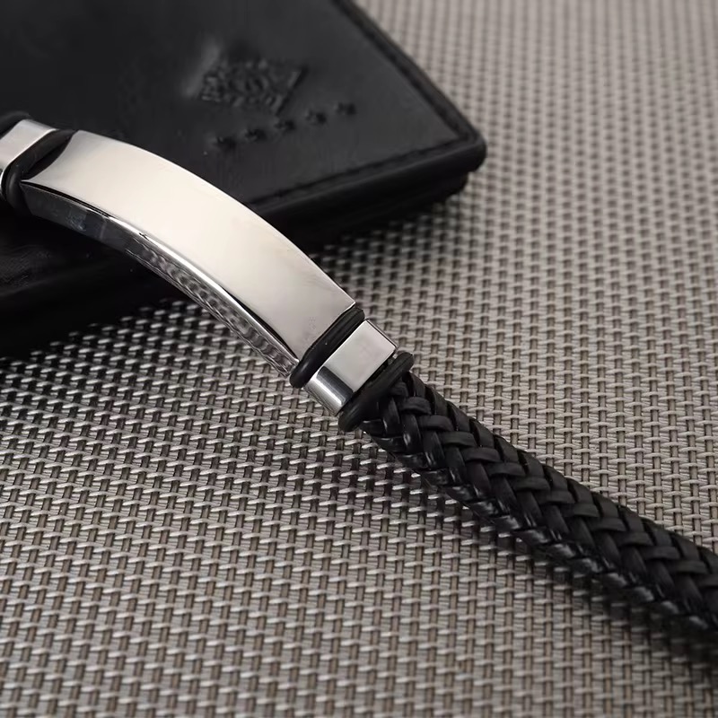 Crafted with high-quality braided leather and finished with a durable stainless steel magnetic clasp, this bracelet combines comfort with long-lasting durability. The sleek metal plate detail adds a refined touch, making it suitable for both casual and semi-formal outfits.