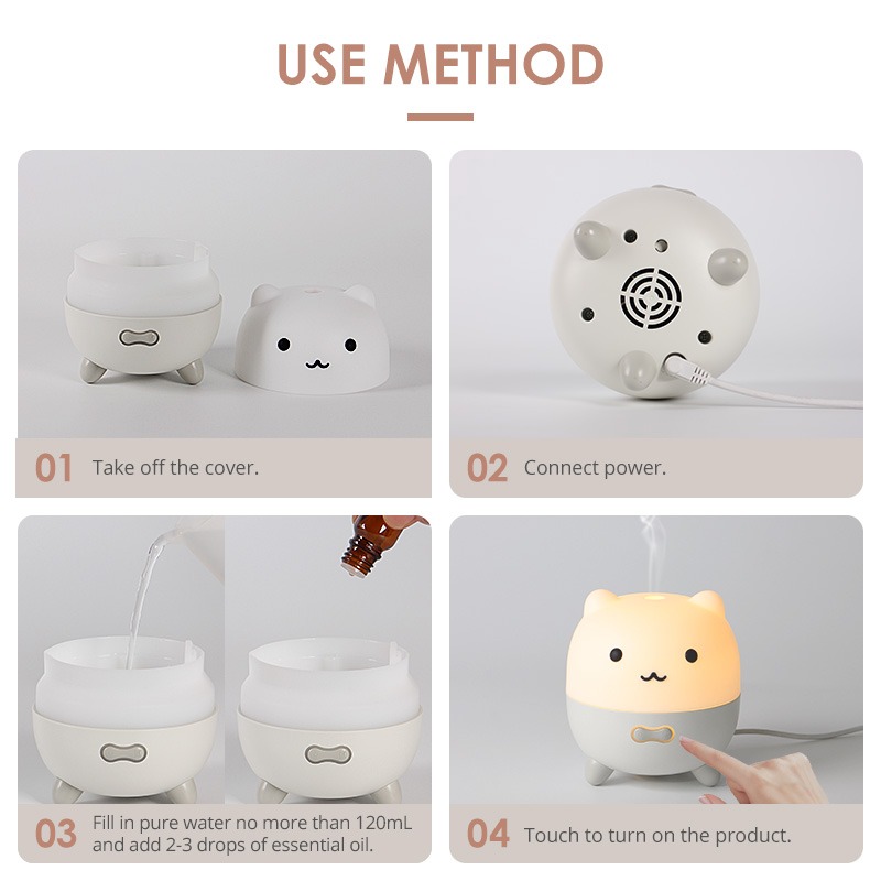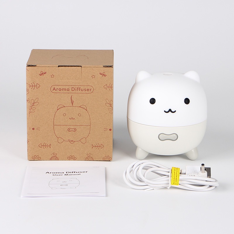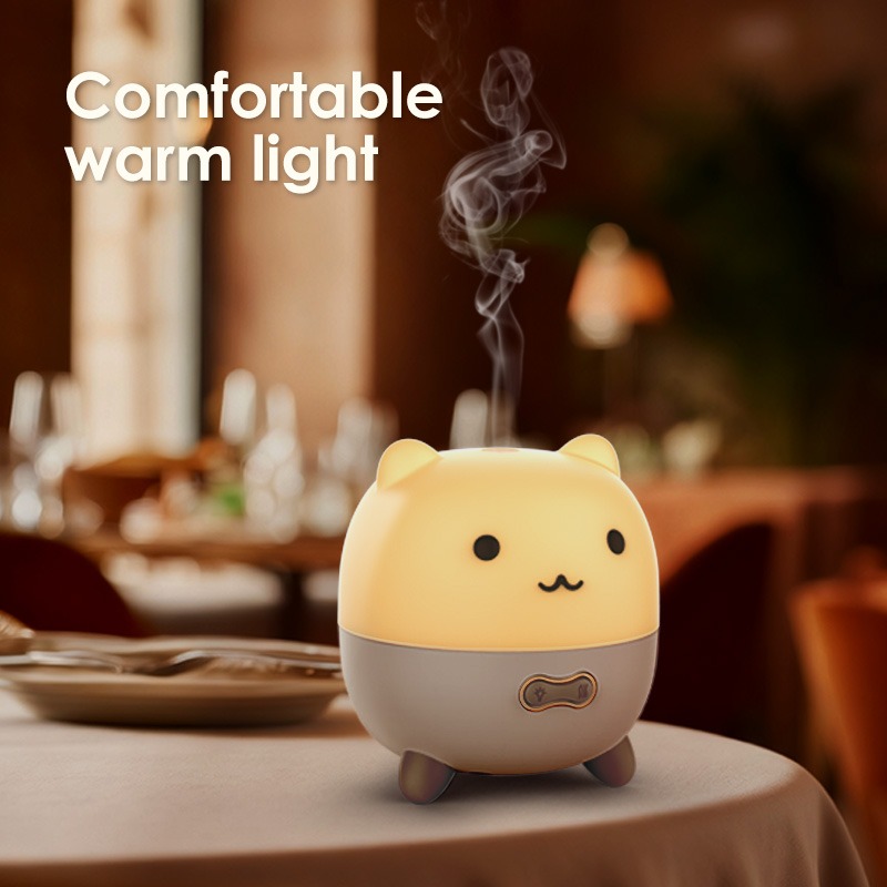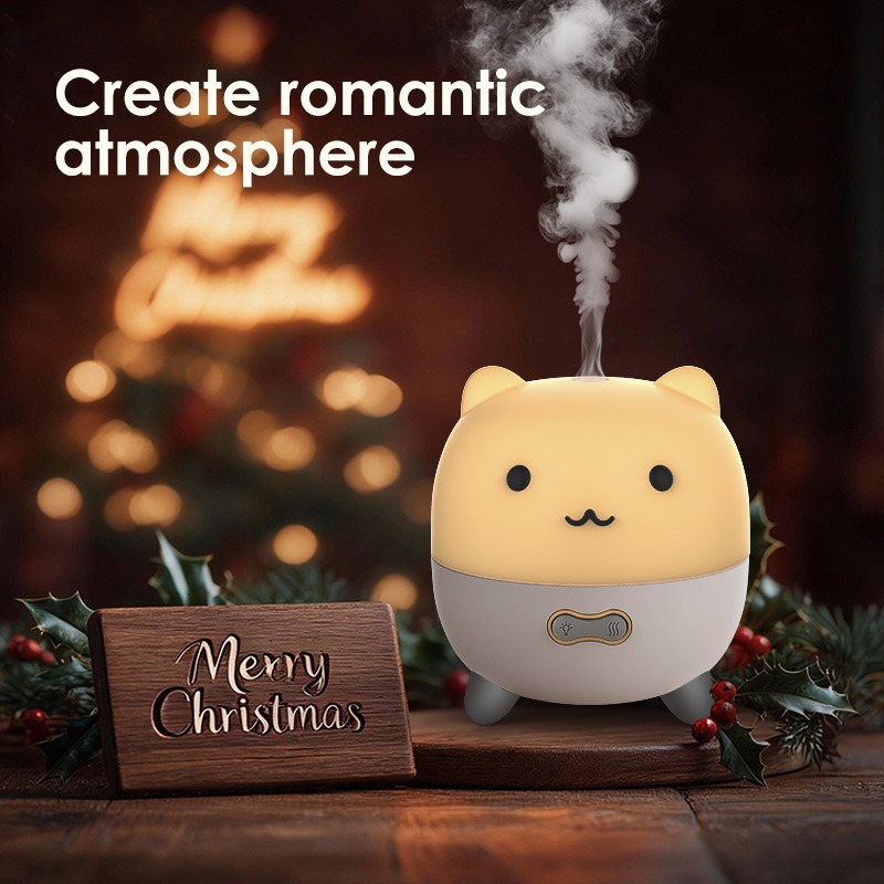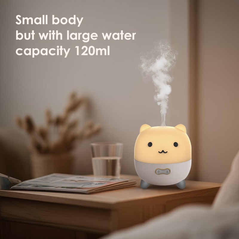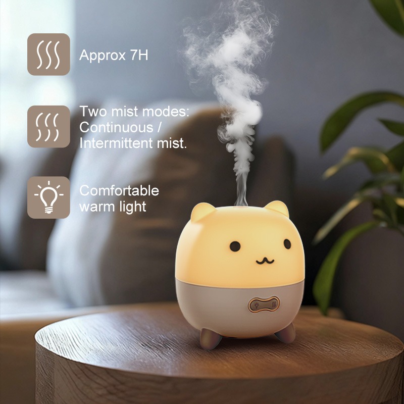 A compact cat-shaped humidifier with soft mist, warm lighting, and ultra-quiet operation — perfect for bedrooms, desks, and cozy spaces.