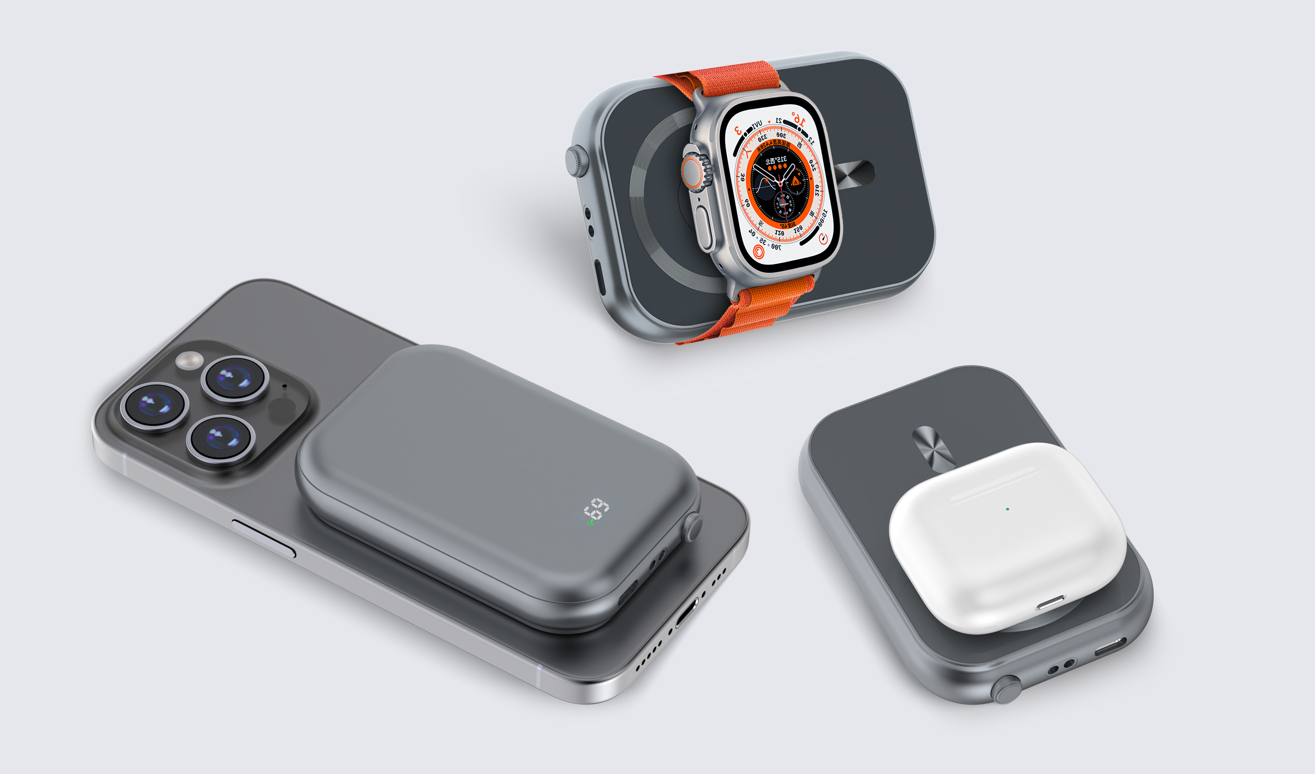 PDB-594 The 3-in-1 Magnetic Wireless Charging Power Bank combines smart design, high-speed charging, and ultimate portability. Perfect for Apple users, it wirelessly powers your iPhone, Apple Watch, and AirPods simultaneously — wherever you go.