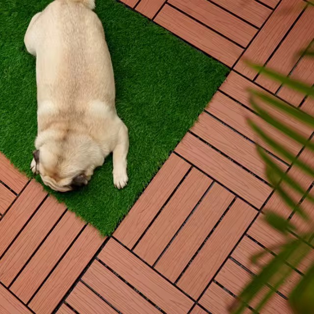 Anti-Slip WPC Interlocking Deck Tiles – Waterproof Composite Outdoor Flooring (Straight Stripe Design)