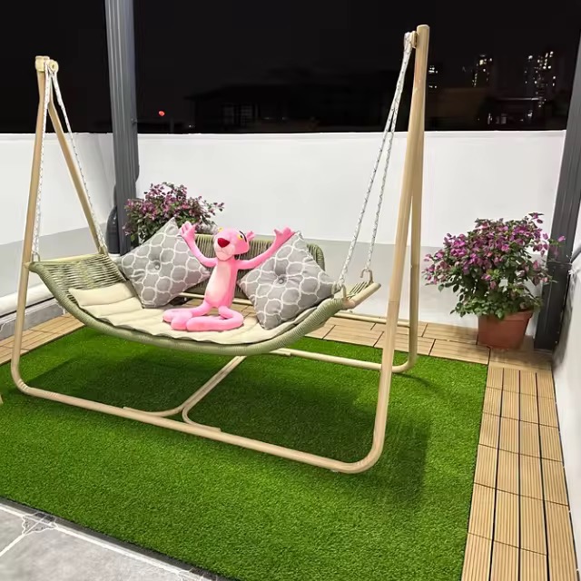 Realistic artificial grass tiles with interlocking base—soft, durable, and perfect for balconies, patios, and indoor play areas.