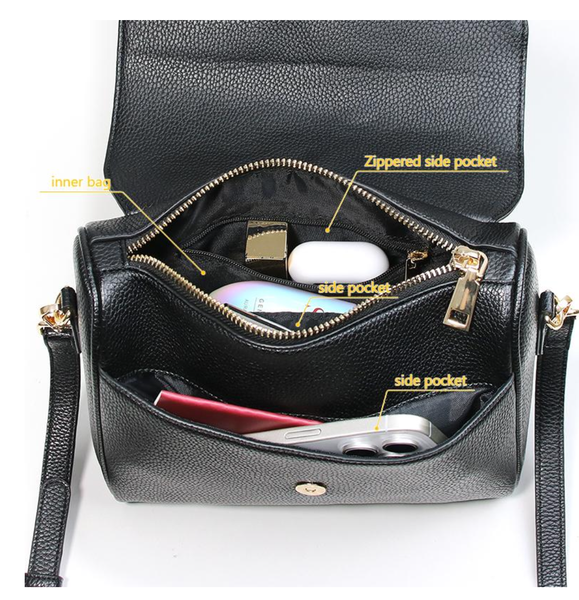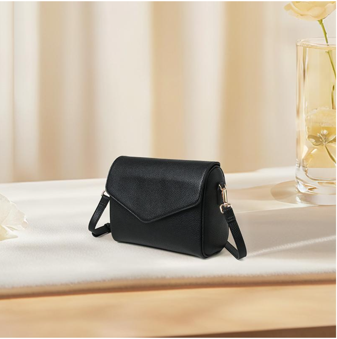 Sleek genuine leather crossbody bag with structured design, adjustable strap, and smart interior storage—perfect for daily essentials.