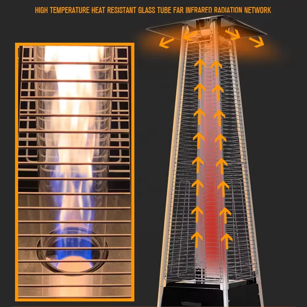 Premium Pyramid Flame Patio Heater – Outdoor Gas Heater with Glass Tube & Safety Protection